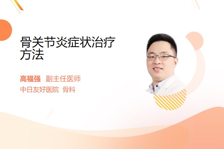 骨关节炎症状包括关节疼痛、关节僵硬、关节肿胀等;治疗方法为药物治疗、物理治疗、手术治疗等。
