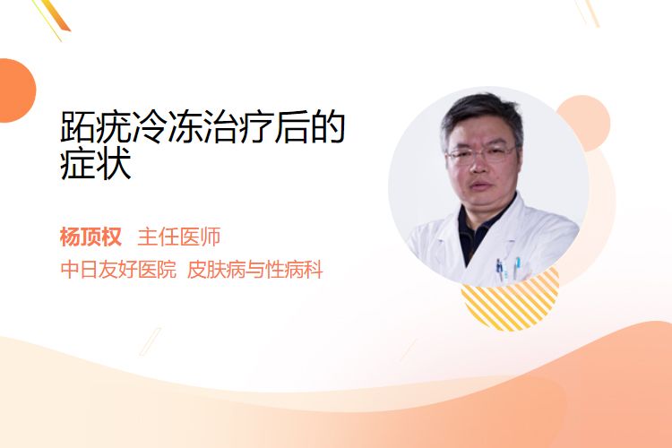 跖疣冷冻治疗后,可能会有局部红肿与疼痛、水疱形成、结痂与脱皮、色素沉着或减退等表现。