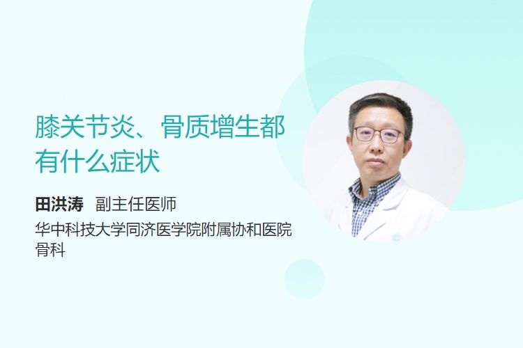 膝关节炎主要表现为关节疼痛(活动后加重、休息后缓解)、僵硬(晨起或久坐后明显)、活动受限;骨质增生常伴随关节疼痛、活动时摩擦感,部分患者可触及硬性增生组织或出现神经压迫症状(如麻木)。