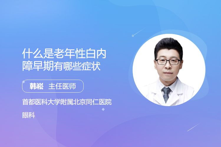 老年性白内障是晶状体老化混浊导致的视力障碍,早期症状主要表现为无痛性视力渐进性下降,伴视物模糊、对比敏感度降低、色觉异常、畏光及单眼复视等。
