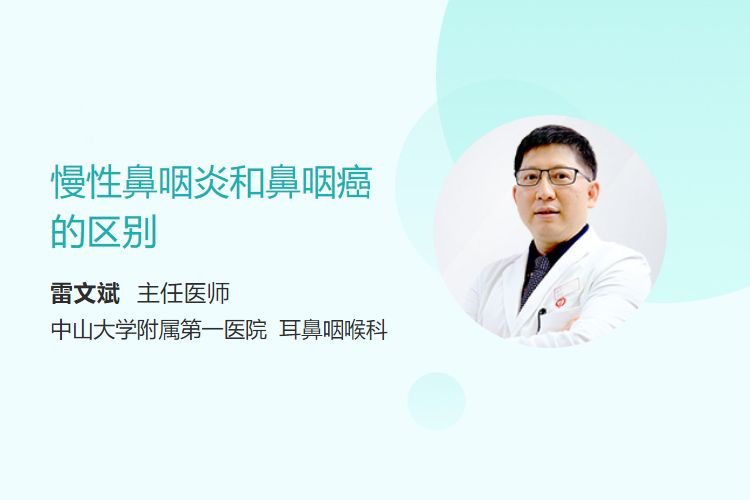 临床表现特点:① 慢性鼻咽炎:鼻咽部干燥、异物感、灼热感,晨起刺激性咳嗽,分泌物黏稠难咳,伴轻微咽痛或声音嘶哑,症状持续2周以上,无颈部肿块或涕中带血。② 鼻咽癌:早期隐匿,逐渐出现单侧鼻塞、回吸涕带血(常见于晨起),耳鸣、听力下降,颈部无痛性淋巴结肿大(质地硬、活动差),头痛(多为单侧颞部),症状进行性加重,病程数周至数月内进展明显。