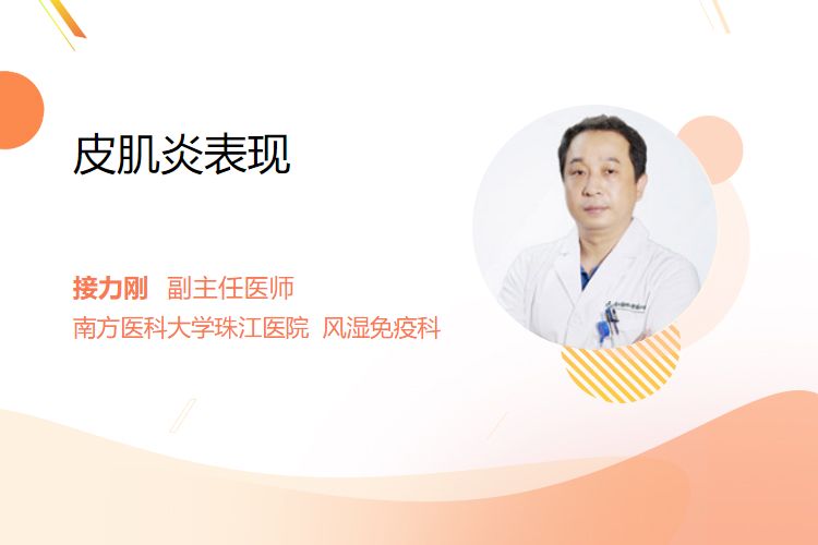 皮肌炎是一种以皮肤和肌肉受累为主要特征的自身免疫性疾病,典型表现包括皮肤特征性皮疹(如眼睑紫红色斑、Gottron征)、对称性近端肌无力,可伴发热、乏力等全身症状,部分患者存在间质性肺病等内脏受累风险。