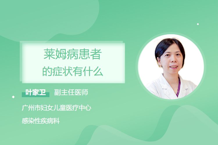 莱姆病早期有皮肤出现特征性慢性游走性红斑及全身发热、乏力等症状,中期有神经系统的脑膜炎、脑神经受累、神经根炎及心脏的传导阻滞等症状,晚期有神经系统的慢性神经系统综合征及关节的关节炎等症状,不同人群因自身情况不同症状表现有差异。
