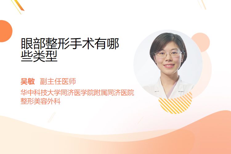 眼部整形手术主要有重睑术、内眦赘皮矫正术、眼袋去除术、上睑下垂矫正术等类型。