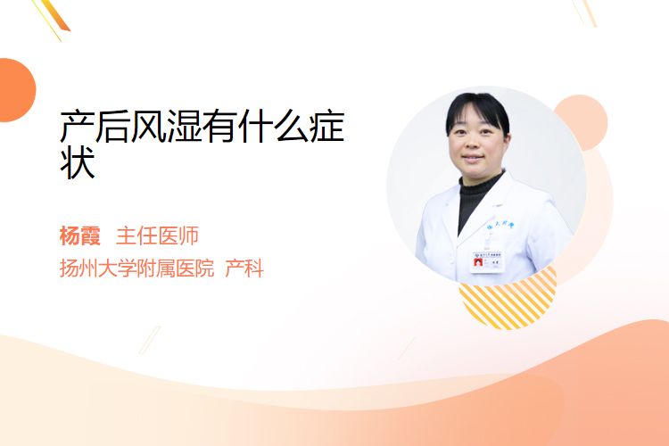 产后风湿常见症状为产后(通常产后数天至数月内)出现的关节疼痛、肌肉酸痛,伴怕风怕冷、易疲劳等表现,具体症状因个体差异和诱因不同存在差异。
