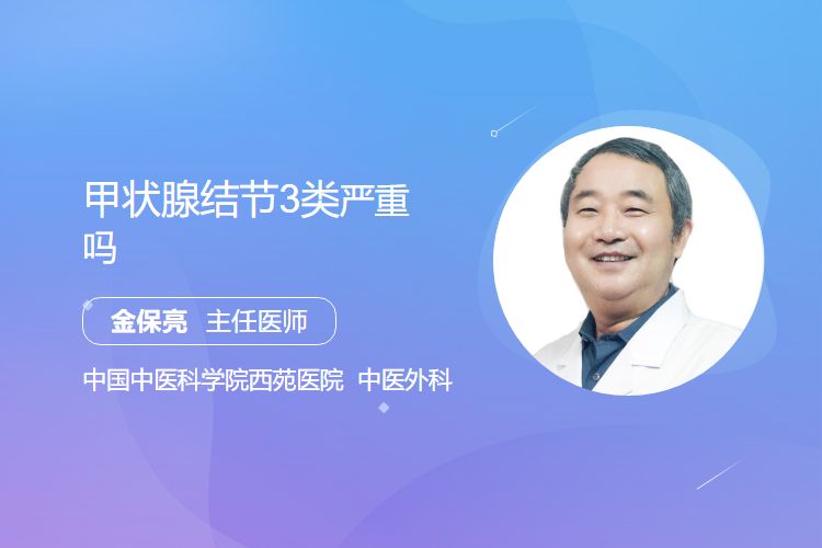 甲状腺结节3类通常提示良性可能性大,恶性风险小于5%,但需密切关注,其严重程度相对较低,不过要考虑年龄、生活方式、病史等因素影响,需定期超声随访,据结节变化由医生决定是否穿刺活检来采取相应处理措施。