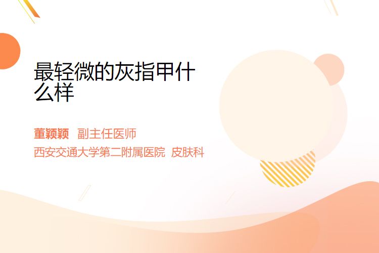 最轻微的灰指甲通常表现为指甲边缘或前端出现极轻微的浑浊、变色(如浅黄、白色斑点),或仅有极小面积的甲板增厚,无明显疼痛或不适,一般无自觉症状。