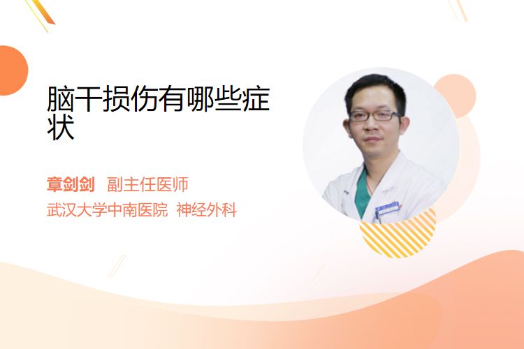 脑干损伤症状包括意识障碍(伤后立即出现,持续数小时至数月)、瞳孔异常(大小不等、对光反射消失)、呼吸循环障碍(呼吸不规则、血压波动)、肢体瘫痪(交叉性瘫痪)及去皮质强直(四肢强直、角弓反张)。