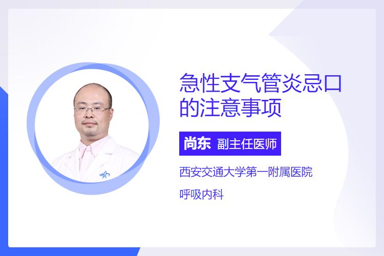 急性支气管炎患者忌口的注意事项包括忌辛辣食物、忌油腻食物、忌过甜食物、忌生冷食物等。
