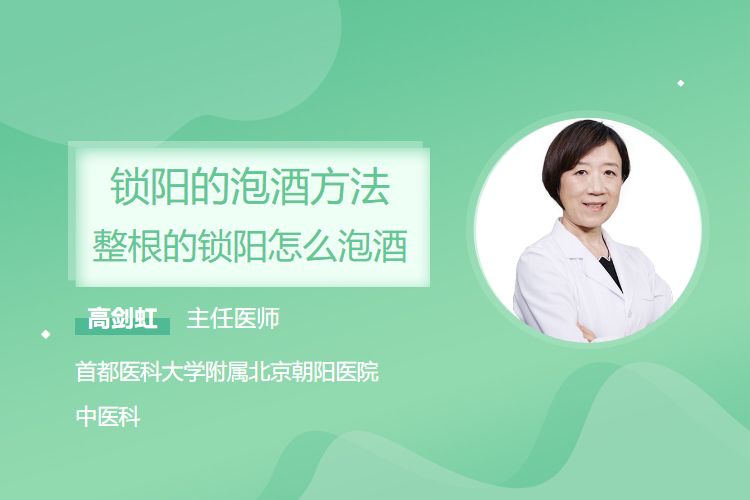 整根锁阳泡酒基础方法为:取整根锁阳50~100g,洗净后切成薄片或小段,放入500ml白酒(40~55度)中,密封浸泡15~30天,待酒色呈深棕色即可饮用,每日适量(10~20ml)。