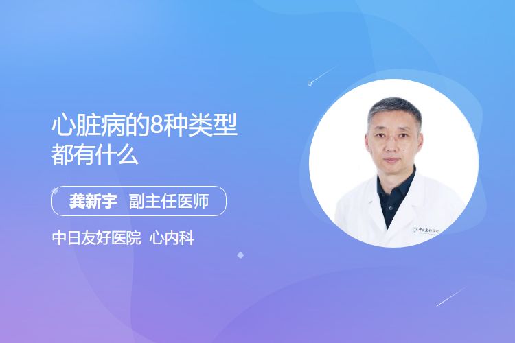 心脏病主要分为8种类型:冠心病(冠状动脉疾病)、心律失常、心力衰竭、心肌病、先天性心脏病、心脏瓣膜病、心包疾病、高血压性心脏病。