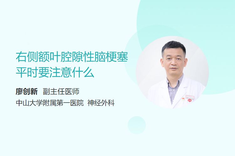 右侧额叶腔隙性脑梗塞平时需要注意的药物治疗、饮食调整、控制体重、适量运动、定期复查、注意情绪等。