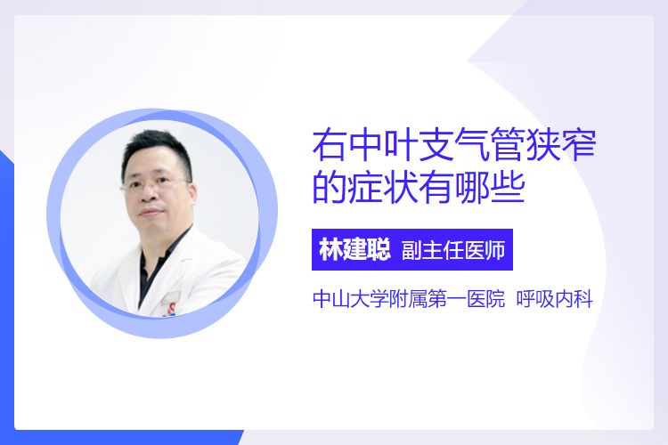 右中叶支气管狭窄的症状有咳嗽咳痰、呼吸困难、喘息、反复肺部感染等。