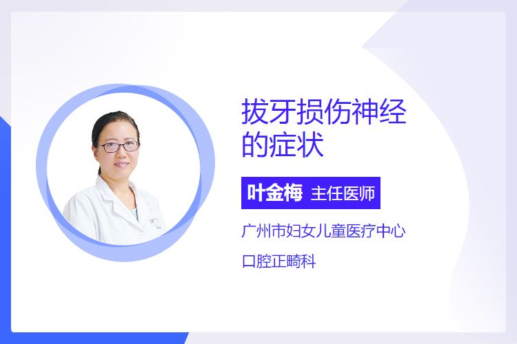 拔牙后损伤神经可能会出现下唇麻木、拔牙后疼痛、牙关紧闭、面部肌肉瘫痪、感觉异常、咀嚼无力等症状。