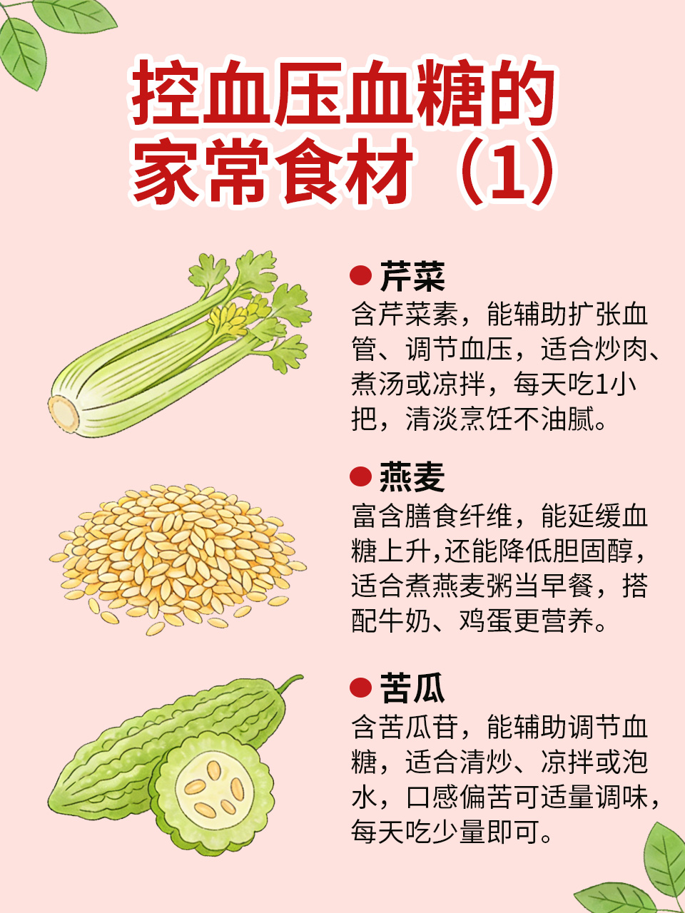 血压血糖异常需长期调理,除了遵医嘱,日常多吃以下👇家常食材,能辅助平稳指标,安全又易获取,适合日常搭配食用。