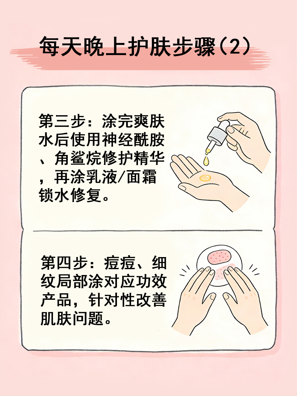 晚上是皮肤修复的黄金时间⏲️,护肤重点是“清洁彻底、滋养修护”,正确的晚间护肤步骤能帮助皮肤代谢垃圾,补充营养,以下4步👇,简单高效,适合每天坚持。