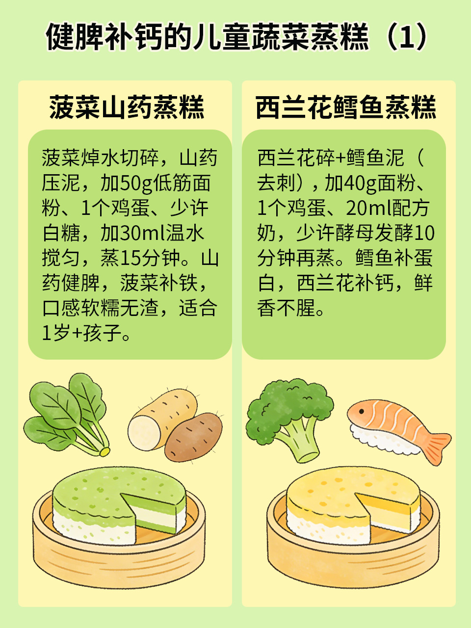 1️⃣菠菜山药蒸糕
